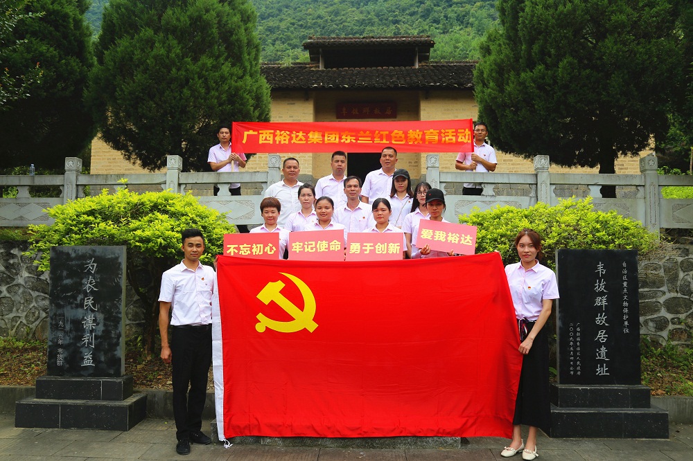 东兰县是全国著名的革命老区,是全国最早开展农民运动的地区之一,是广西农民运动的发祥地,是韦拔群、韦国清的故乡,为让集团党员追寻革命先烈的足迹,铭记共产党人的初心,在建党98周年之际,2019年7月1日至2日集团党支部书记谢家伟带领支部15名党员代表赴东兰县开展“不忘初心、牢记使命”红色教育活动,集团公司董事长兼总裁邓亚保、广西福毅德投资有限公司董事长黄毅出席本次活动,城北街道党工委组织干事卢玉妮受邀参加活动。