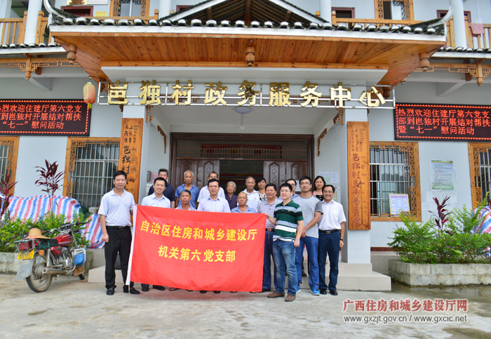 为庆祝建党95周年,自治区住建厅第六党支部于7月1日当天组织8名党员代表赴上林县扶贫点开展了“两学一做”暨“七一”慰问老党员主题实践活动。