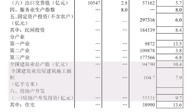 房屋新开工面积95817万平方米,增长11.8%,增速提高1个百分点。其中,住宅新开工面积70611万平方米,增长15.0%。房屋竣工面积37131万平方米,下降10.6%,降幅扩大0.5个百分点。其中,住宅竣工面积25962万平方米,下降12.8%。