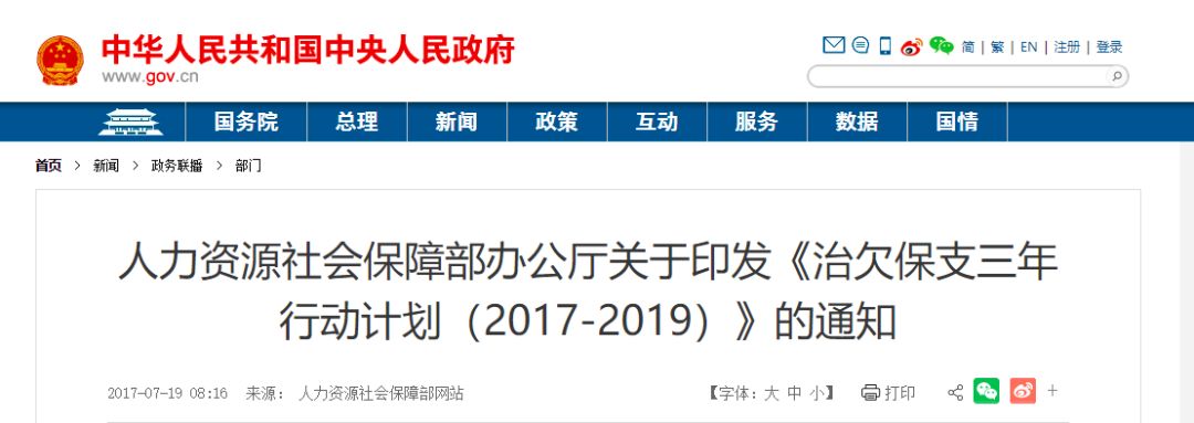 人力资源社会保障部办公厅关于印发《治欠保支三年行动计划(2017-2019)》的通知
