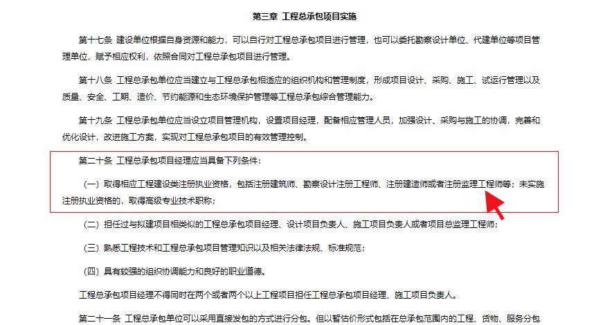 监理工程师、注册建筑师、勘察设计注册工程师等可以担任工程总承包项目经理了!