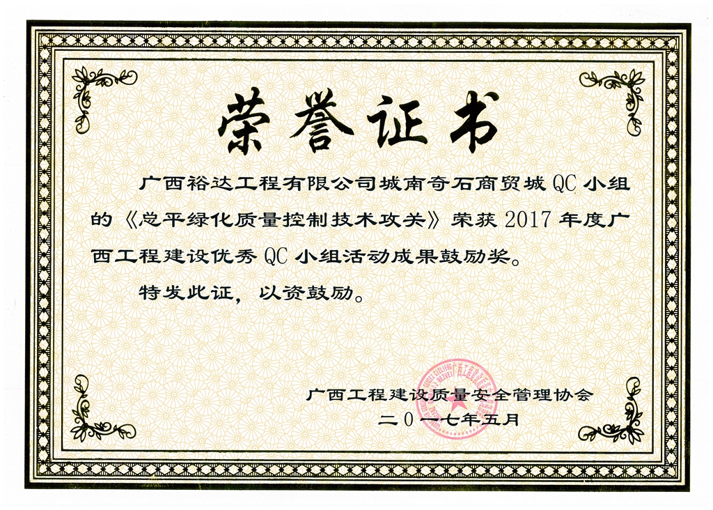 2017年广西工程建设优秀QC小组活动成果鼓励奖