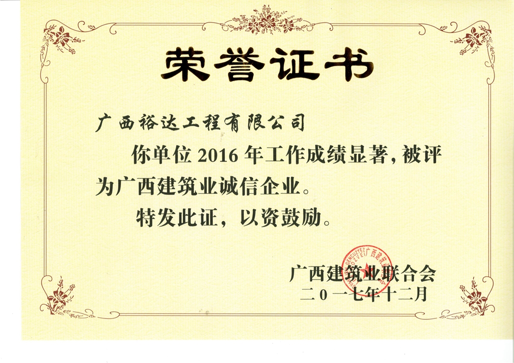 2016广西建筑业诚信企业